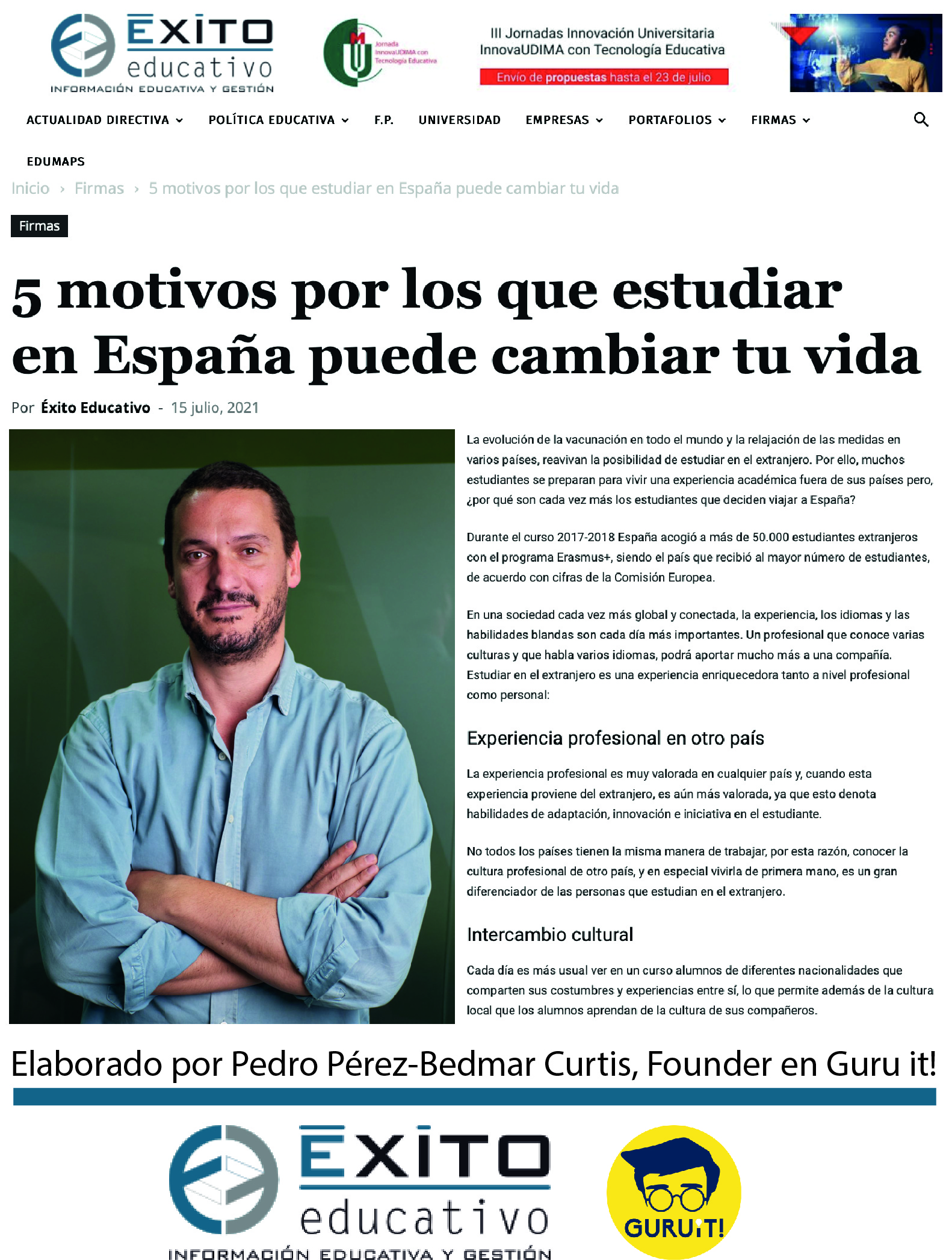 La sección Ecoaula del periódico Eleconomista se hace eco de la última publicación de nuestro Cofundador y CEO, Pedro Pérez-Bedmar, bajo el título "¿Por qué España es el país preferido por los estudiantes internacionales?"