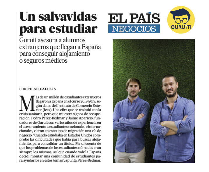 El periódico nacional “El País” ha publicado en su sección de negocios un artículo de Pedro Pérez-Bedmar y Jaime Aparicio, Fundadores de Guru it!, titulado “Un salvavidas para estudiar”.