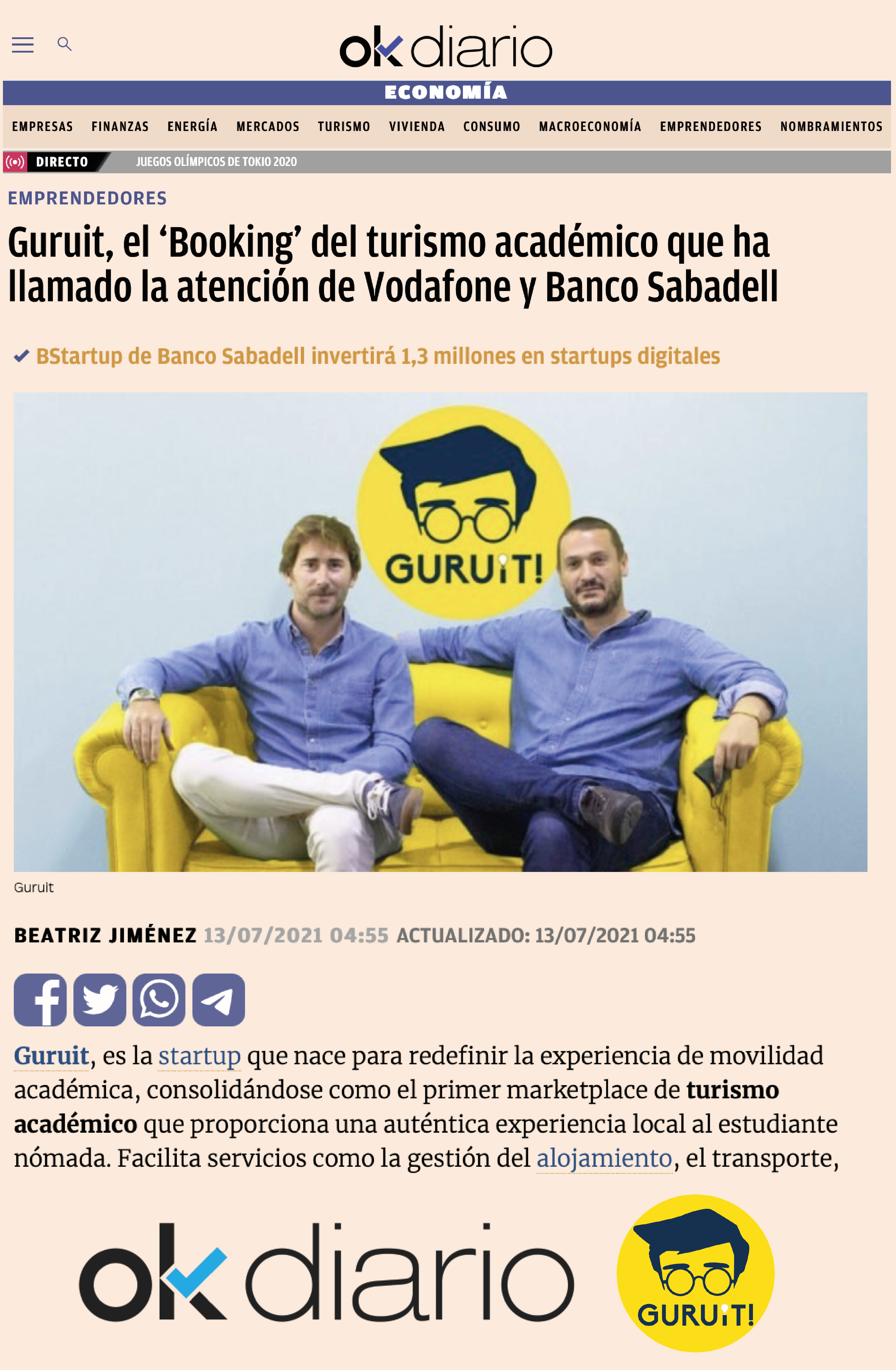 El portal digital OK Diario, describe a Guruit! como el “Booking” para los estudiantes internacionales que escogen a España para realizar sus estudios profesionales.
